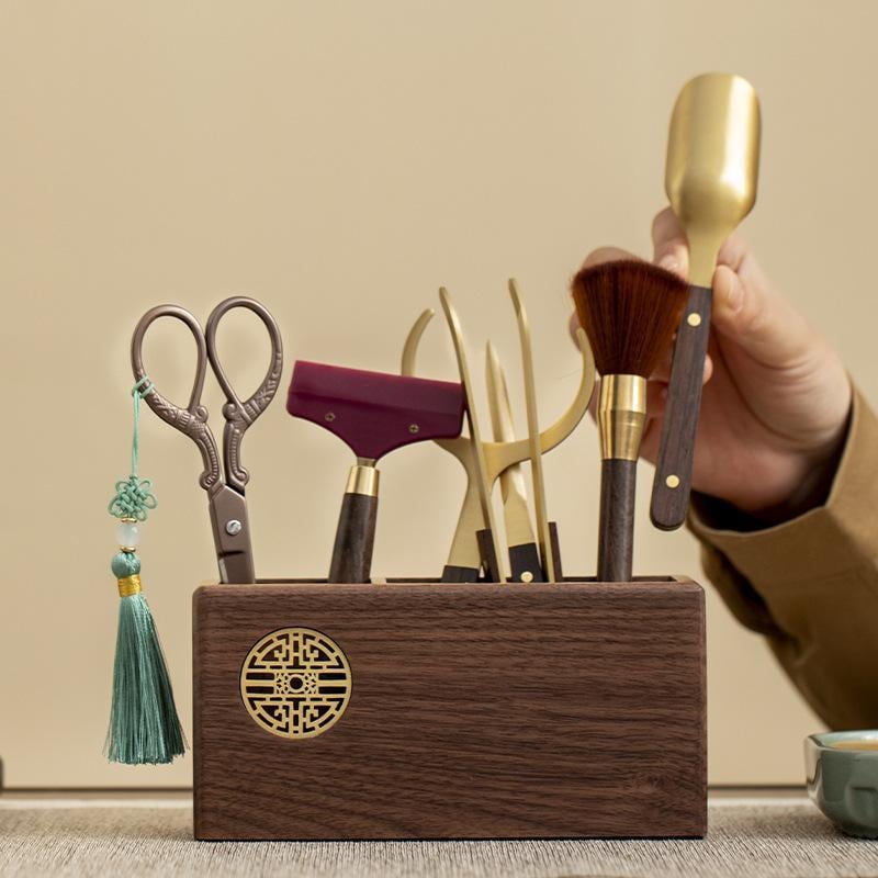 茶器 ウォールナット材 新中国風 モダンチャイニーズ 茶道六君子 セット 功夫茶 煎茶 お茶入れ ティーサーバー 茶挟 ハサミ 純チタン 黄銅アクセサリー