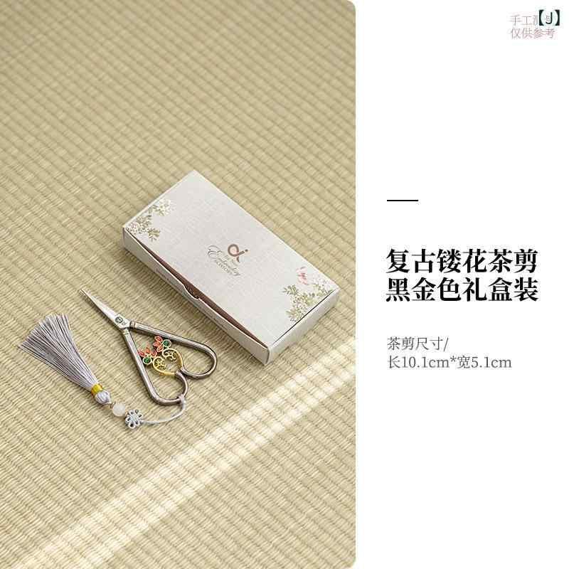 茶葉ハサミ ミニ鋏 ティーバッグカッター 茶葉パック用 シザー 鋳鉄製 レトロ 中華風 アンティーク調 茶道 茶器 小物 道具 蓮柄 透かし彫り 金梅柄