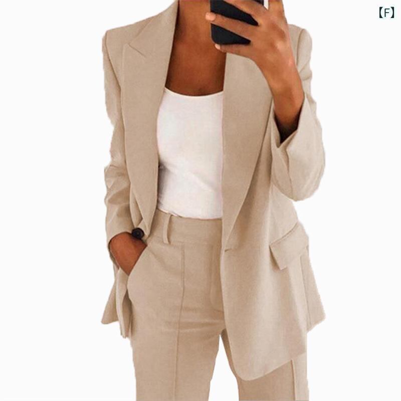 スーツ レディース 女性用 秋冬 欧米風 ポリエステル テーラードジャケット アウター スリムフィット 上品 エレガント きれいめ オフィス 通勤 ビジネス セットアップ