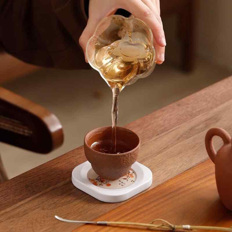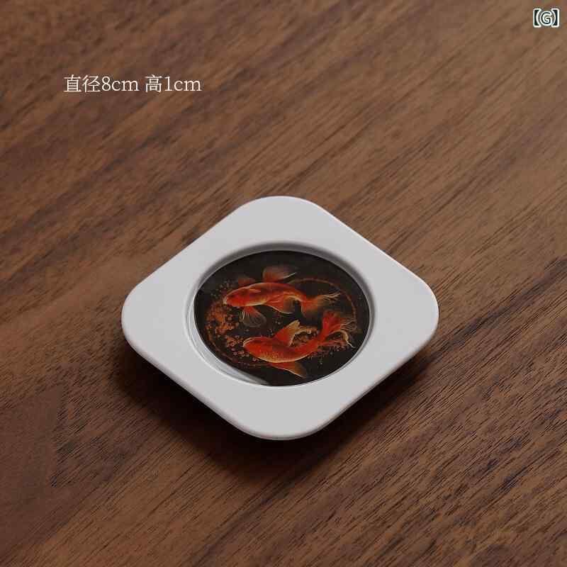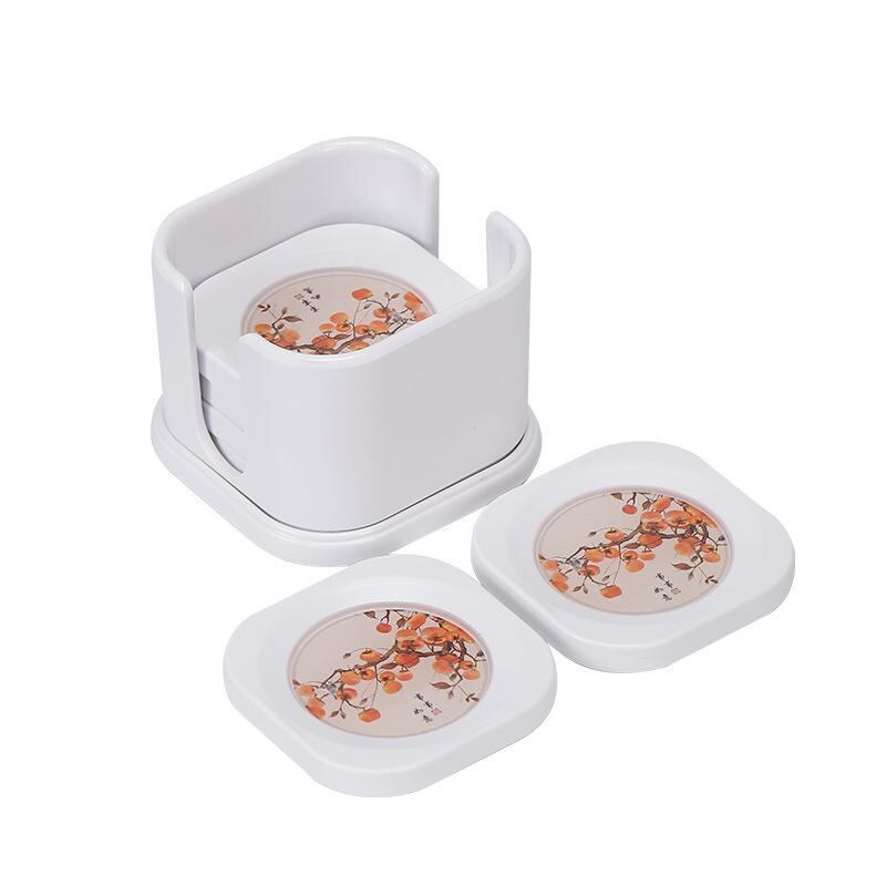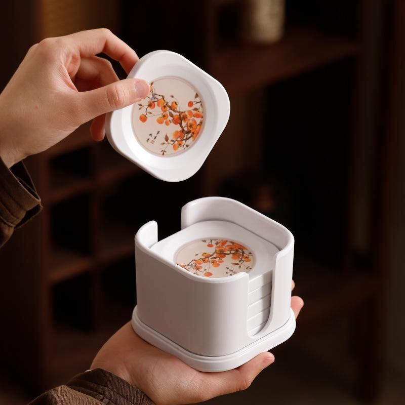 コースター 白 ホワイト ベークライト製 断熱 茶托 柿柄 吉祥文様 スクエア 来客用 普段使い お茶席 おもてなし 収納スタンド付き 6枚セット 新和風 モダン