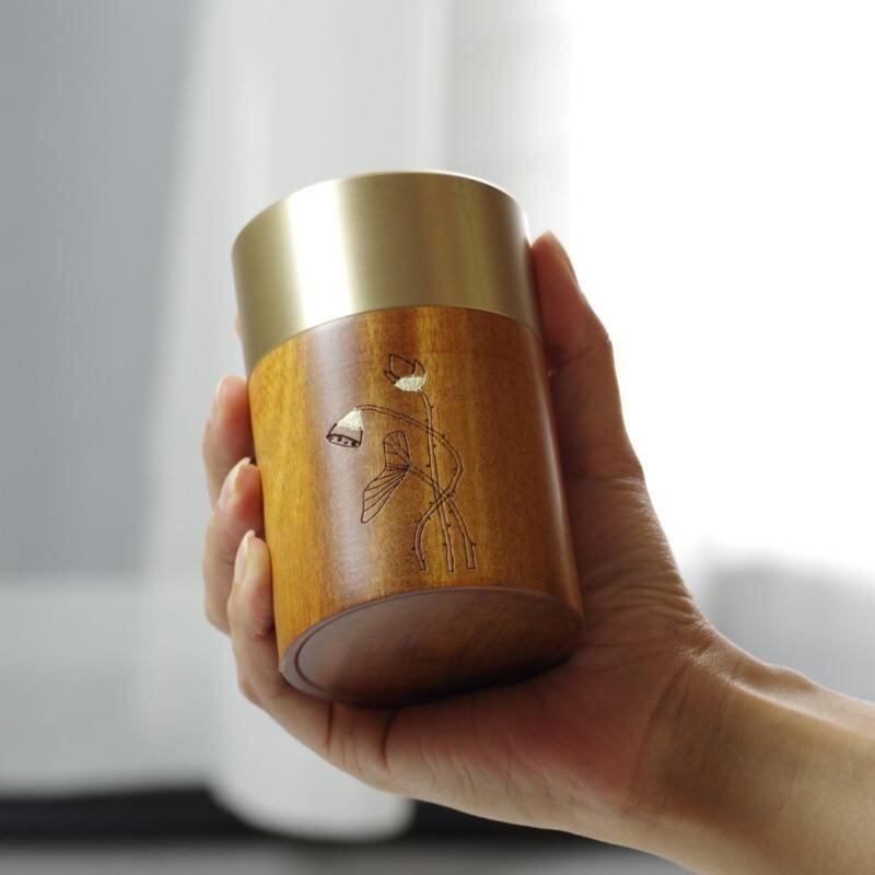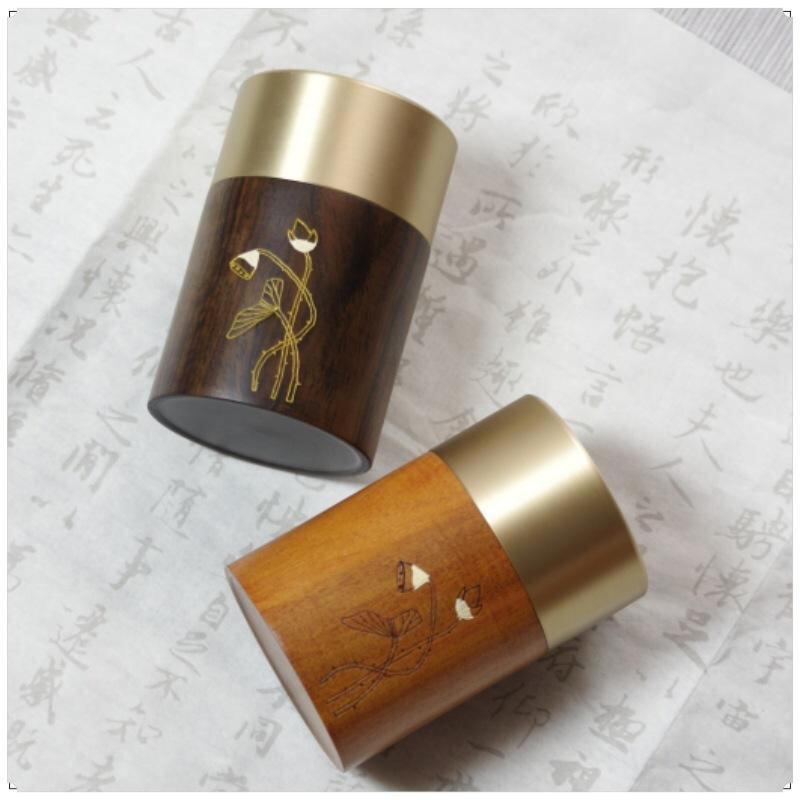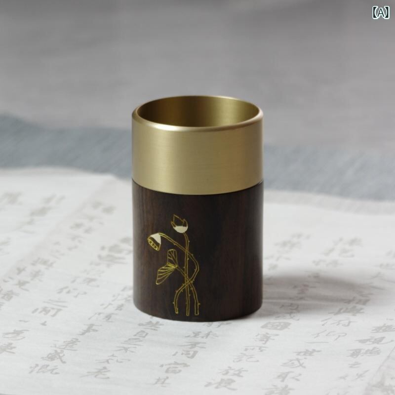茶道具 茶道六君子用 収納茶筒 家庭用 真鍮 銅 木目調 高級感 新中式スタイル おしゃれ モダン ディスプレイ ダークブラウン 普段使い