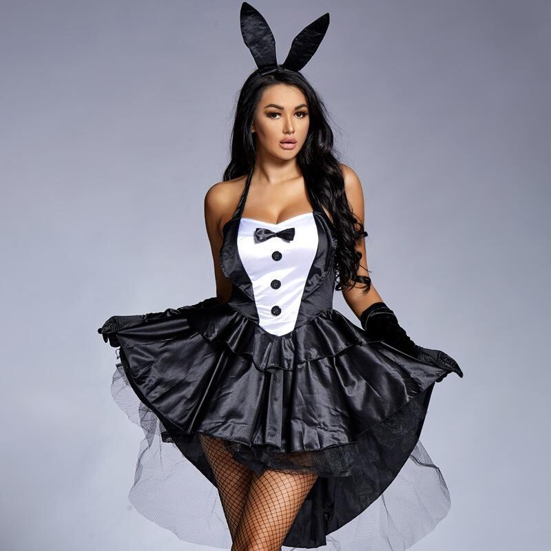 ハロウィン コスチューム レディース 女性用 バニーガール タキシード タキシード マジシャン 衣装 舞台 発表会 イベント パーティー 撮影会 スタジオ写真 ポリエステル スパンデックス混紡 黒 ブラック 欧米サイズ 大きいサイズ