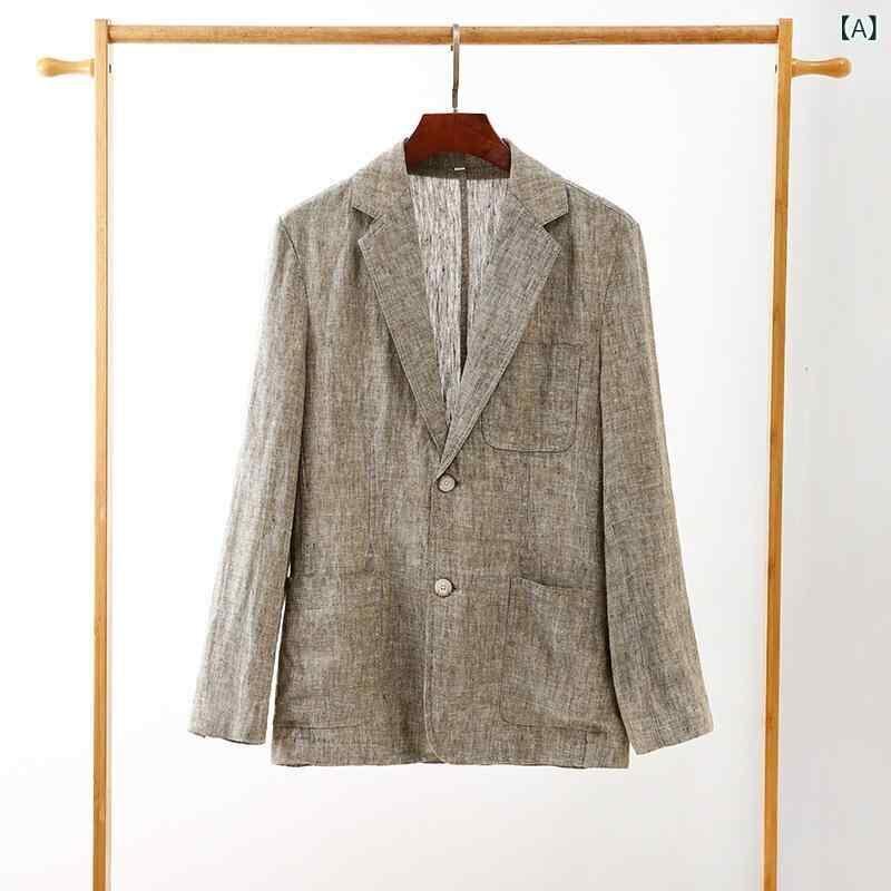 テーラードジャケット メンズ リネン 麻 通気性 ゆったり ルーズフィット 快適 カジュアル ビジネス 普段使い 春秋 カーキ