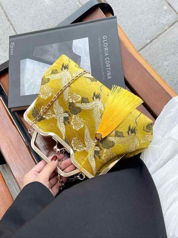 バッグ 鞄 レディース 新中華風 レトロ クラシカル 刺繡 絹 ミニ 貝殻型 がま口 チェーン ショルダーバッグ 斜め掛け 日常使い 漢服 チャイナドレス イエロー グリーン レッド ブラック