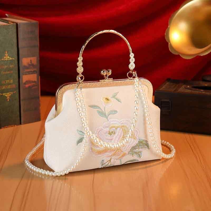 バッグ レディース チャイナ風 レトロ 刺繍 ショルダーバッグ ハンドバッグ がま口 上品 マザーズバッグ 大容量 普段使い 旅行 漢服 和装 シルク