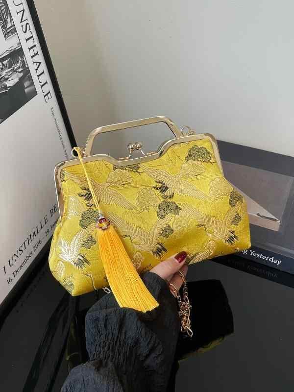バッグ レディース 個性的な 新中華風 刺繍 チェーン ショルダーバッグ 斜め掛け がま口 鞄 口金 レトロ調 古典 漢服 チャイナドレス 和装小物 シルク 貝殻型 多色展開