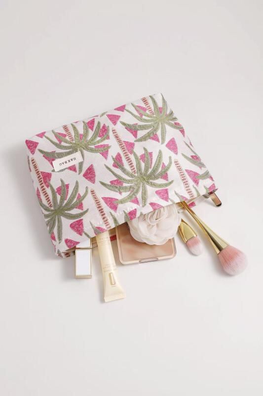 化粧ポーチ レディース スイカ ヤシの木 花柄 ジャガード織り キャンバス布製 コスメポーチ スキンケア収納 携帯用 旅行用 クラッチバッグ ハンドポーチ ファスナー付き 春夏 爽やか
