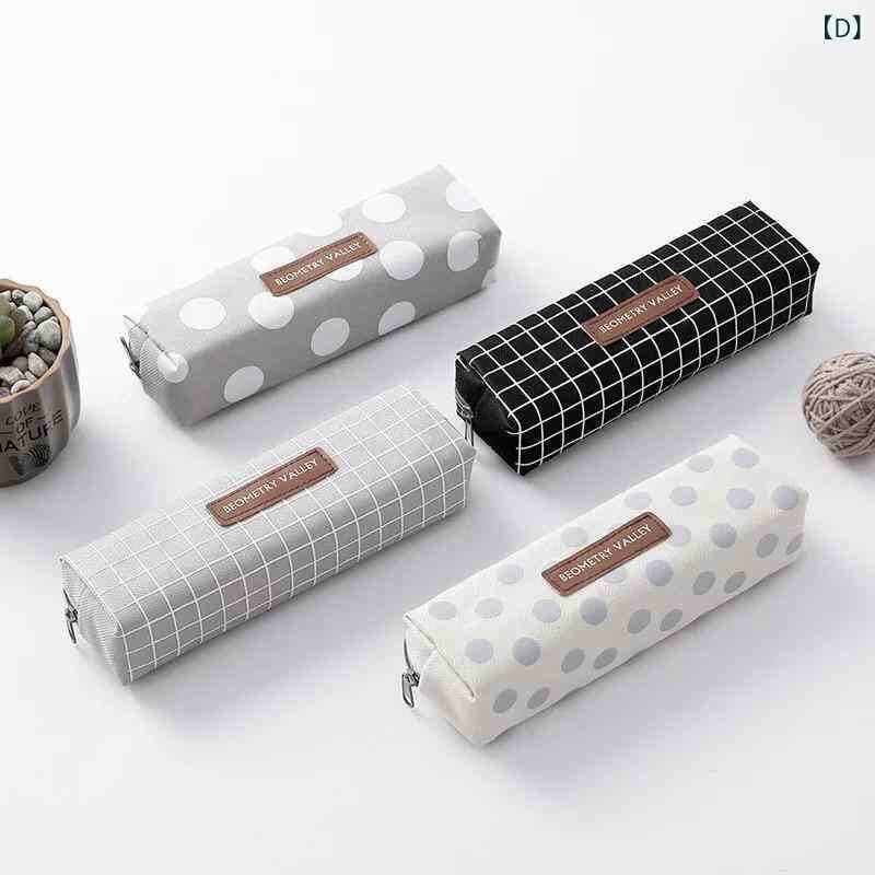 ペンケース 女の子 キッズ 小学生 女性用 キャンバス 帆布 大容量 シンプル おしゃれ さわやか ナチュラル 韓国風 オルチャンファッション 学習用 文房具収納 学用品 チェック柄 ドット柄 バイカラー