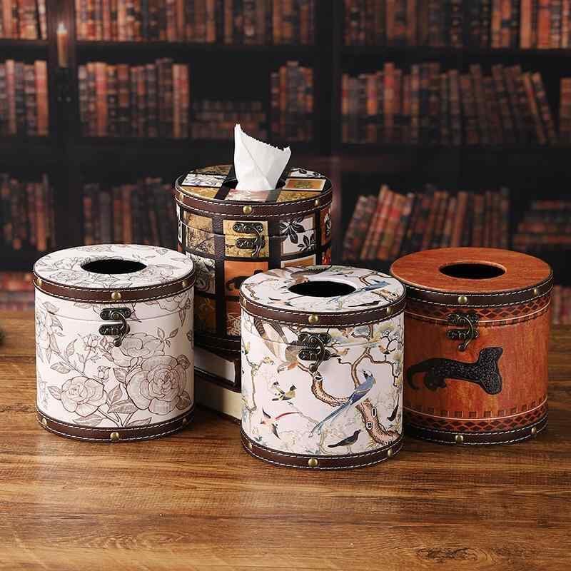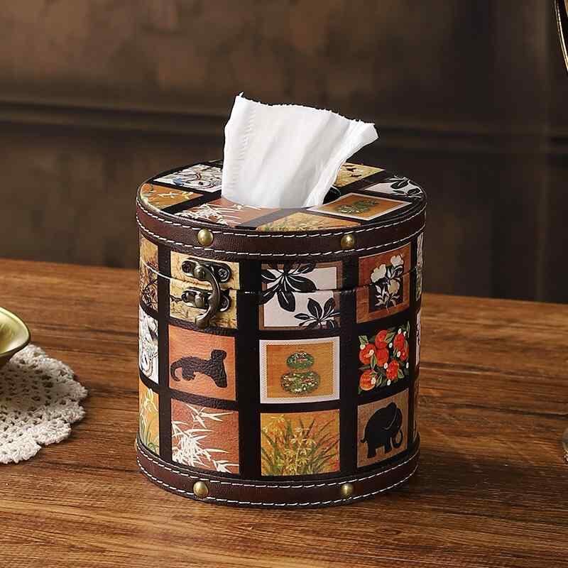 ティッシュケース 中国風 花鳥柄 円形 レザー 車載用 リビング ダイニング 寝室 ホテル 民泊 オフィス 上品 高級感 おしゃれ デザイン ティッシュボックス