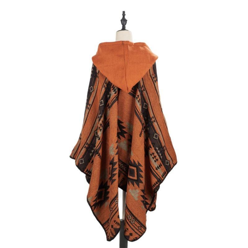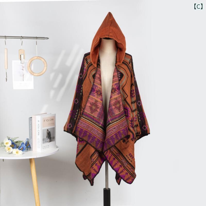 ポンチョ 男女兼用 レトロ ニット ケープ ショール フード付き 厚手 ビッグシルエット ゆったり 防寒 保温 旅行 アウトドア 普段使い 羽織り トップス マフラー ストール