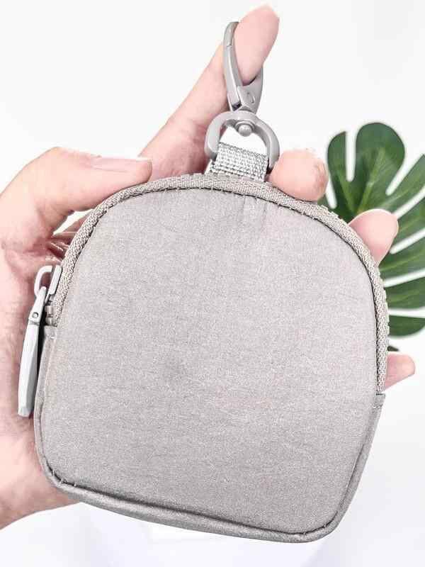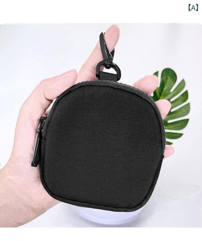 ポーチ 男女兼用 多機能 キーケース 小銭入れ ナイロン素材 アウトドア 携帯用 吊り下げ カラビナ フック イヤホン データケーブル 収納 コンパクト 無地 普段使い