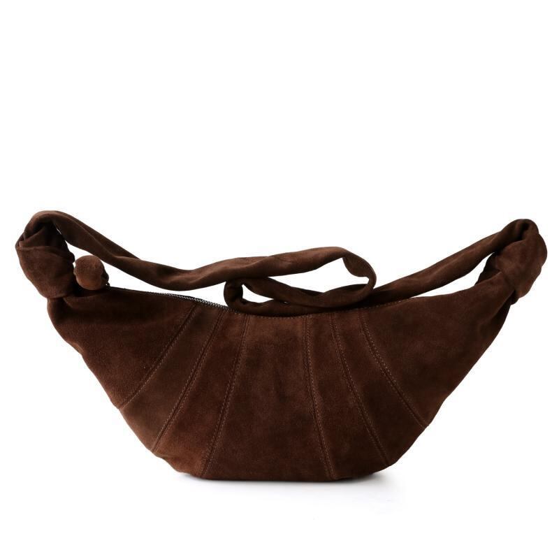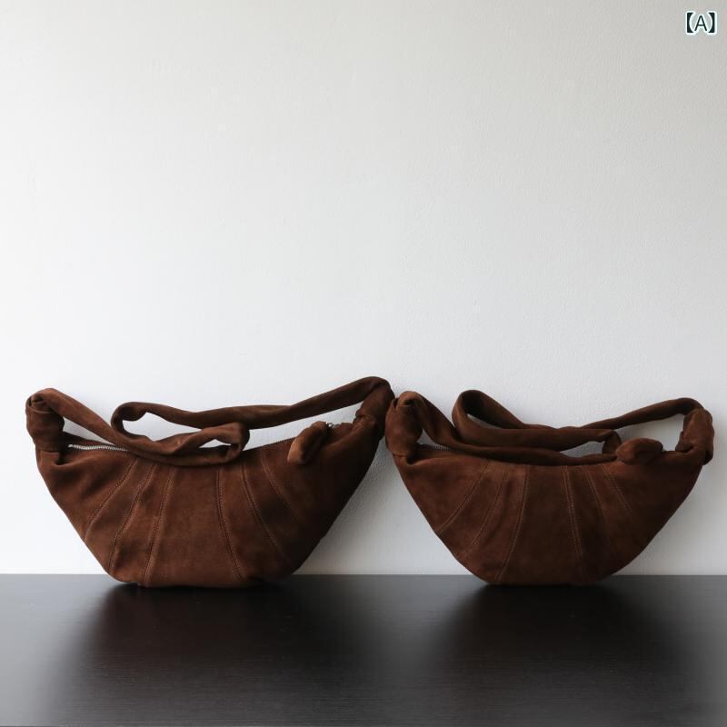 ショルダーバッグ レディース 大容量 本革 スエード レザー クロワッサン型 餃子型 ホーボー型 斜め掛け ワンショルダー ライトラグジュアリー リラックス レトロ ヴィンテージ コーヒーブラウン 切り替え ステッチ 春夏 普段使い デイリーユース