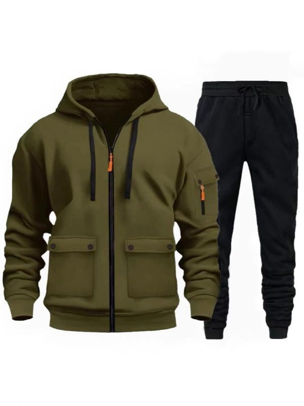 セットアップ メンズ カジュアル スポーツ スウェット トレーナー パーカー プルオーバー アームジップポケット 長袖 上下セット 綿混 ポリエステル 春秋
