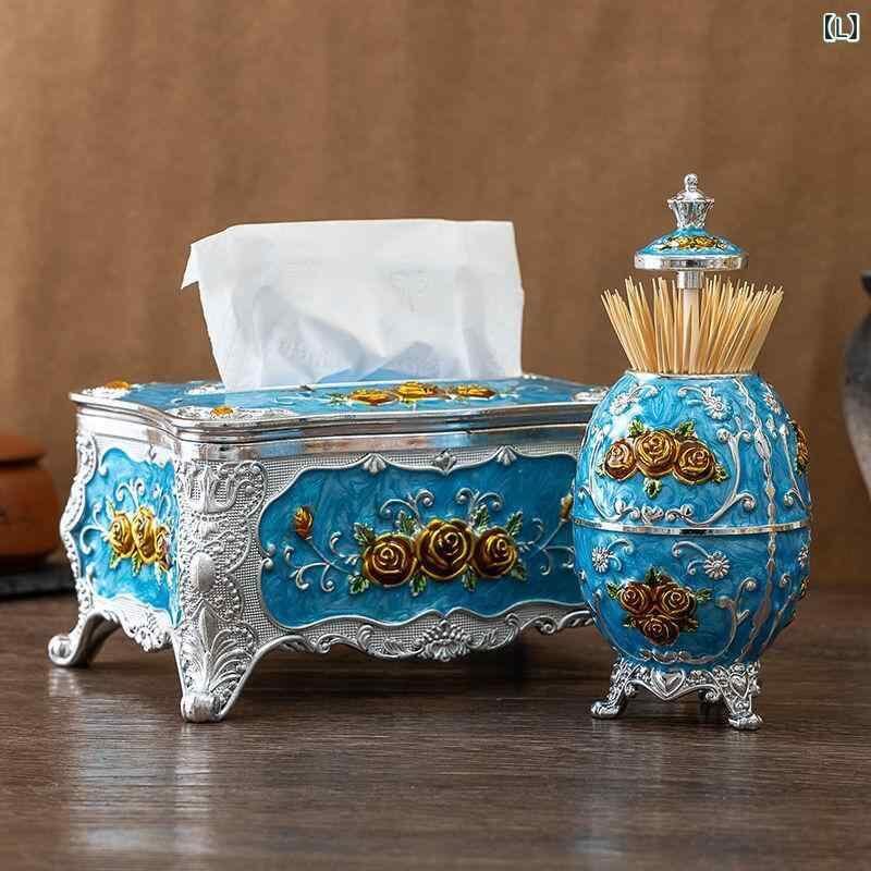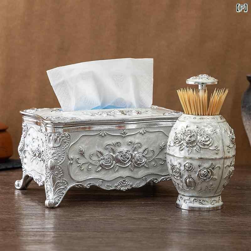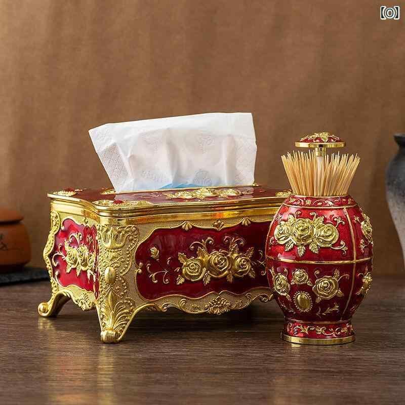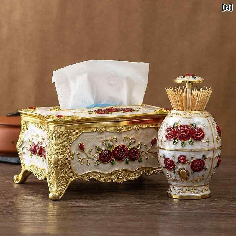 ティッシュケース つまようじケース セット 欧風 ライトラグジュアリー プッシュ式 セラミック製 家庭用 リビング オフィス 卓上収納 おしゃれ モダン インテリア雑貨 高級感 プレゼント