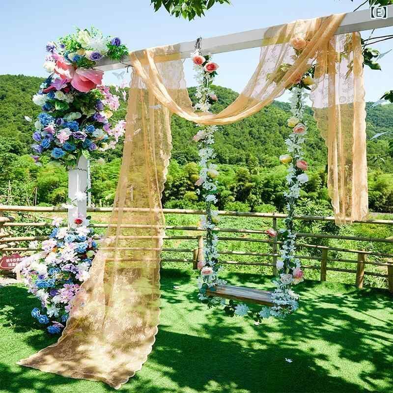 レースカーテン ポリエステル製 ジャカード織り バラ柄 ローズモチーフ 透光性 半遮光 目隠し 結婚式 ブライダル イベント パーティー 装飾 屋外 室内 リビング 寝室 書斎 バルコニー