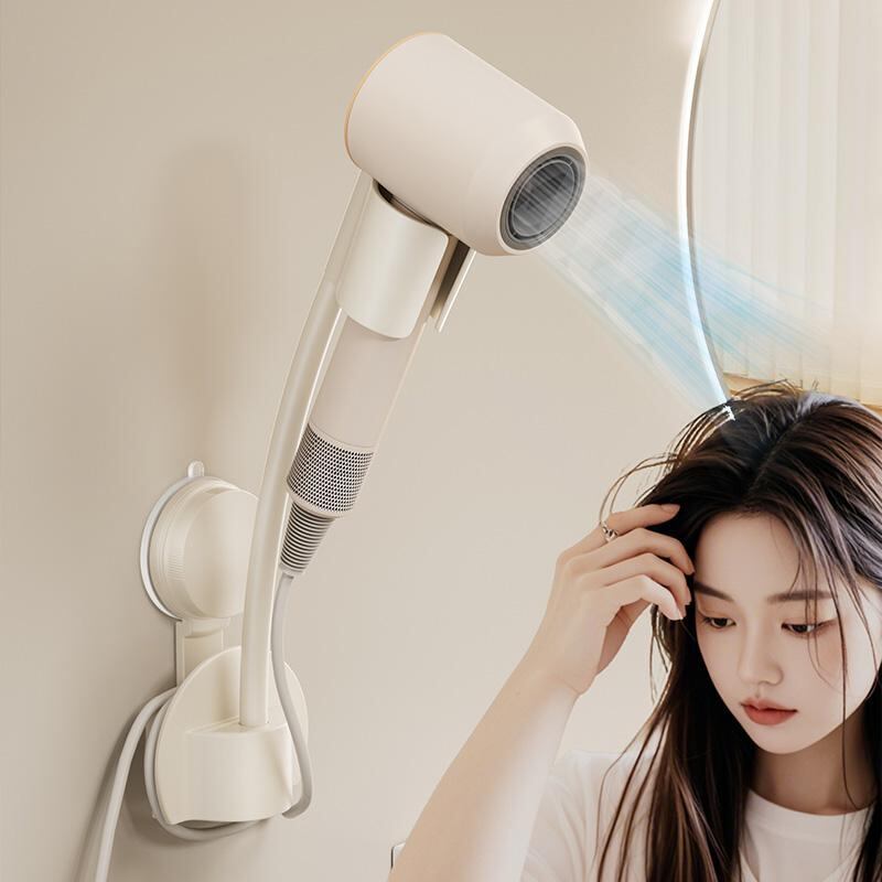 ヘアドライヤーホルダー 吸盤式 壁掛け 穴あけ不要 多機能 バスルーム 洗面所 脱衣所 収納ラック 整理棚 ハンズフリー スタンド 省スペース モダン スタイリッシュ