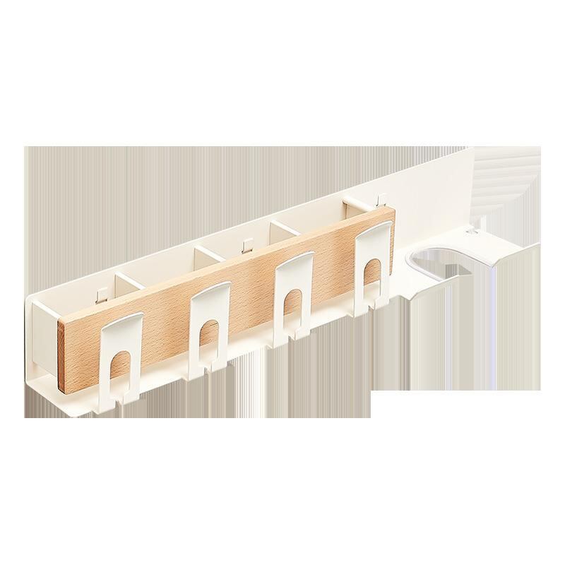収納ラック 天然木風 壁掛け 穴あけ不要 ヘアドライヤー 歯ブラシ 歯磨きコップ 一体型 洗面所 洗面台 多機能
