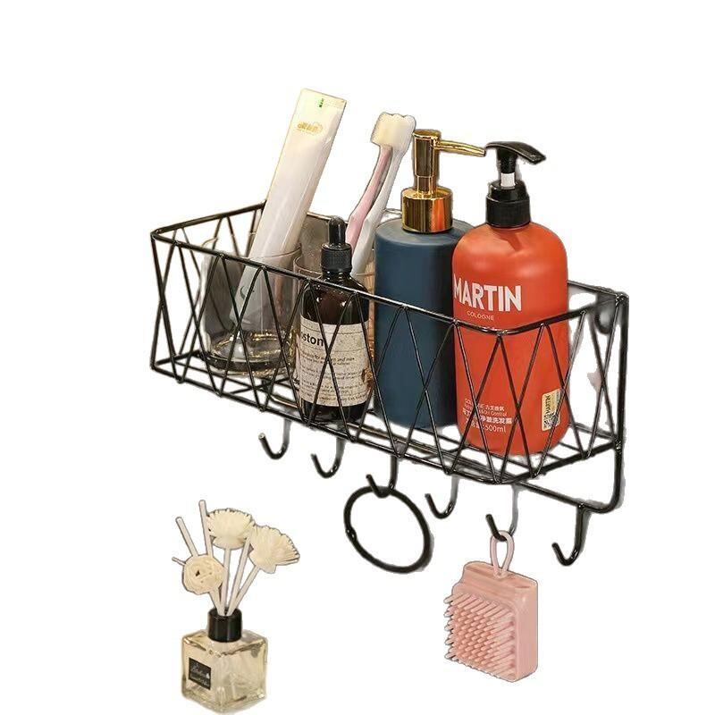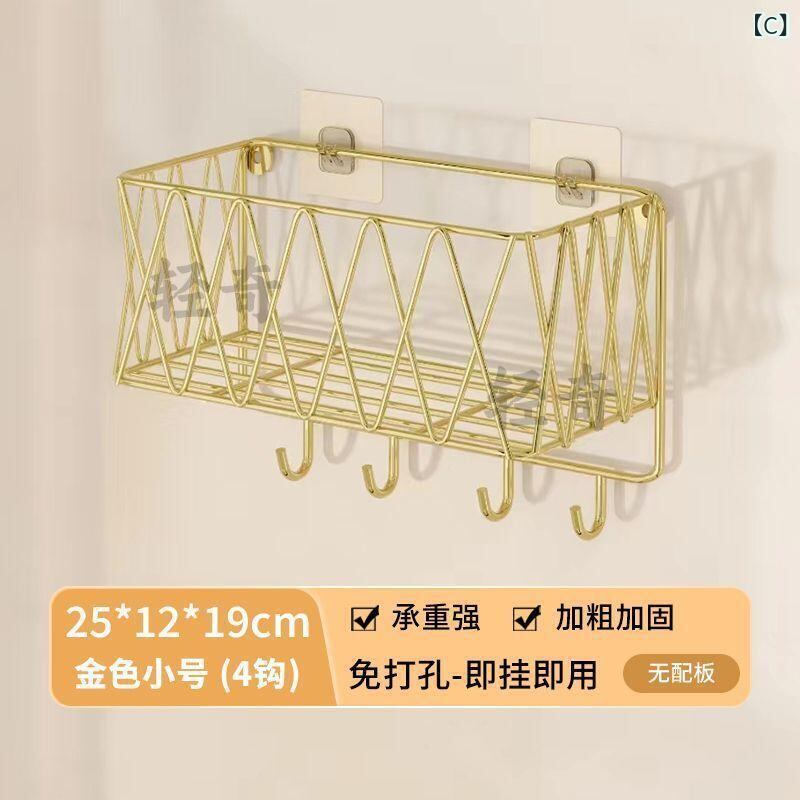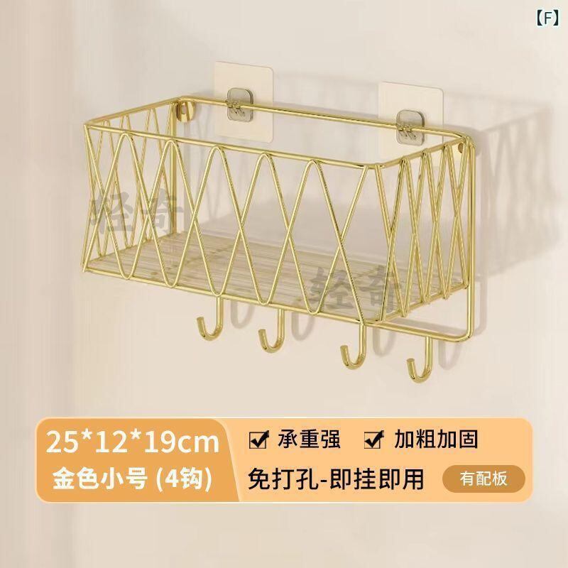 ラック バスルーム トイレ 洗面所 壁掛け 穴開け不要 化粧品 整理棚 北欧風 スチール製 軽量 高級感 フック付き ゴールド ブラック