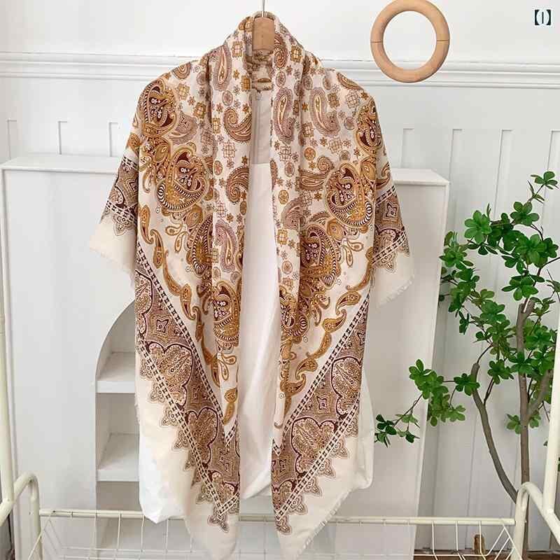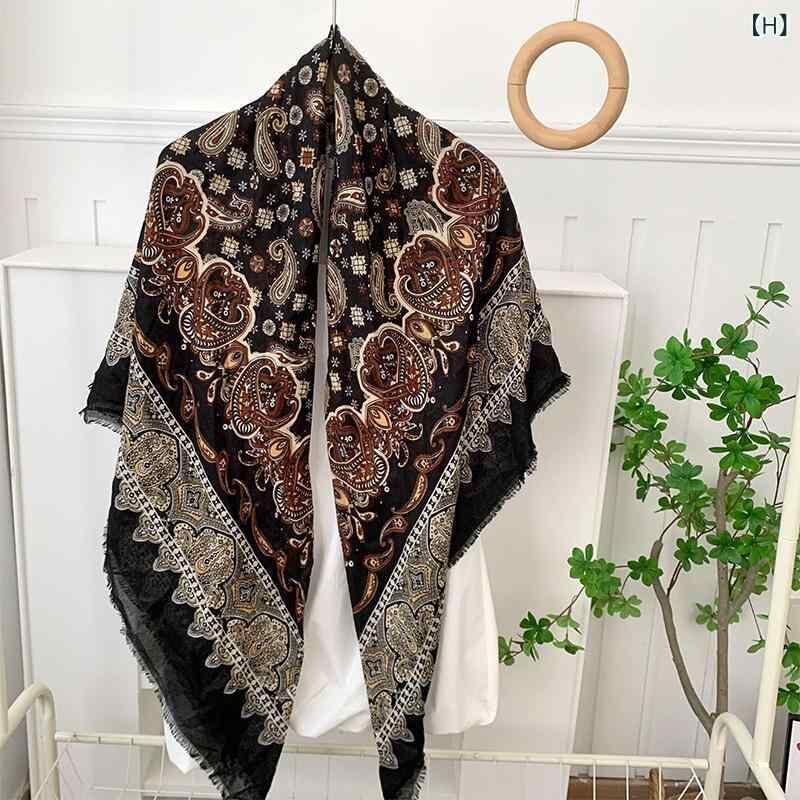 スカーフ 男女兼用 正方形 大判 高級感 ボヘミアン柄 薄手 軽量 多機能 マルチユース 着回し ショール ストール ヘッドスカーフ ターバン 日よけ 紫外線対策 ポリエステル