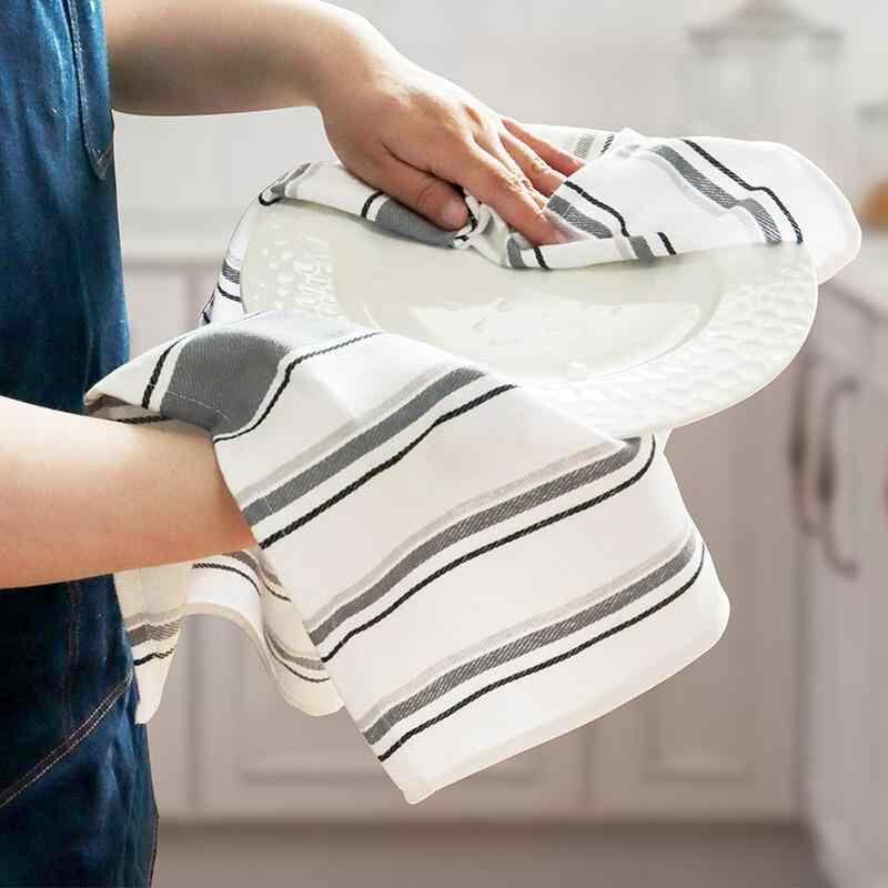 キッチンクロス 織り柄 ストライプ柄 コットン 吸水性抜群 北欧スタイル 茶巾 テーブルナプキン ふきん 食器拭き リビング ダイニング 食卓用 スクエア型