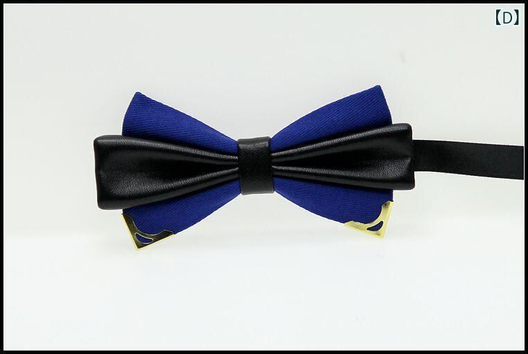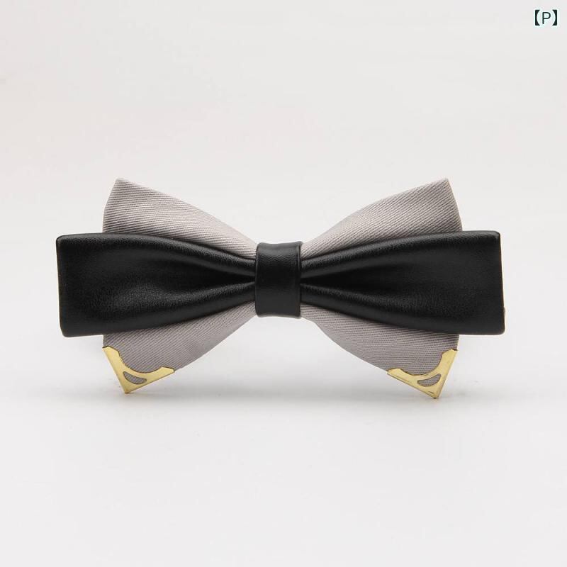 蝶ネクタイ メンズ 男性 ボウタイ 結婚式 新郎 ウェディング フォーマル 上品 ハンドメイド 二重構造 PUレザー 合成皮革 レザー装飾 メタルエッジ 無地 多彩なカラー パーティー イベント