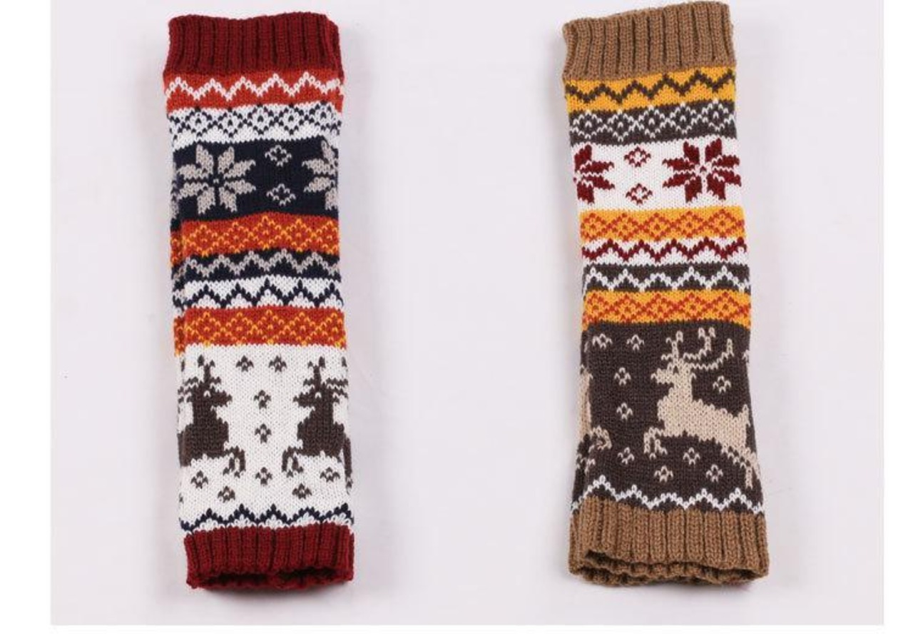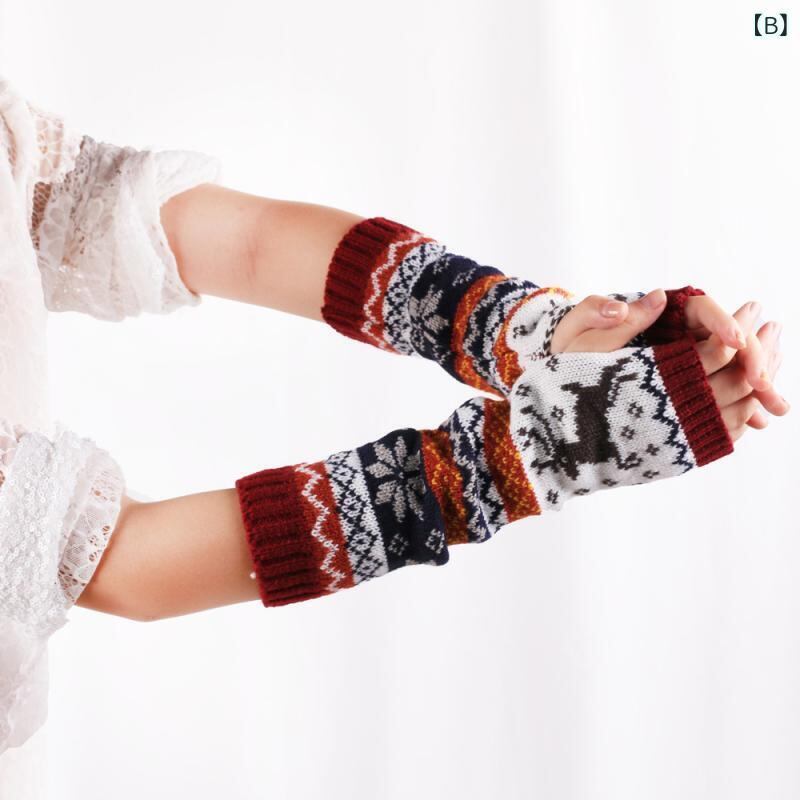 手袋 レディース 女性用 ニット アクリル 半指 ロング アームウォーマー 子鹿 キャラクター クリスマス 防寒 保温 あったか かわいい 秋冬 カーキ ワインレッド ダークグレー