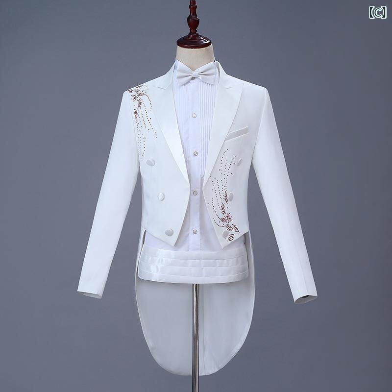 タキシード メンズ 男性用 スリムフィット 細身 タキシード 舞台演出用 ステージ衣装 歌手 司会者 結婚式 披露宴 二次会 宴会 パーティー イベント フォーマル 礼装 綿混 オールシーズン