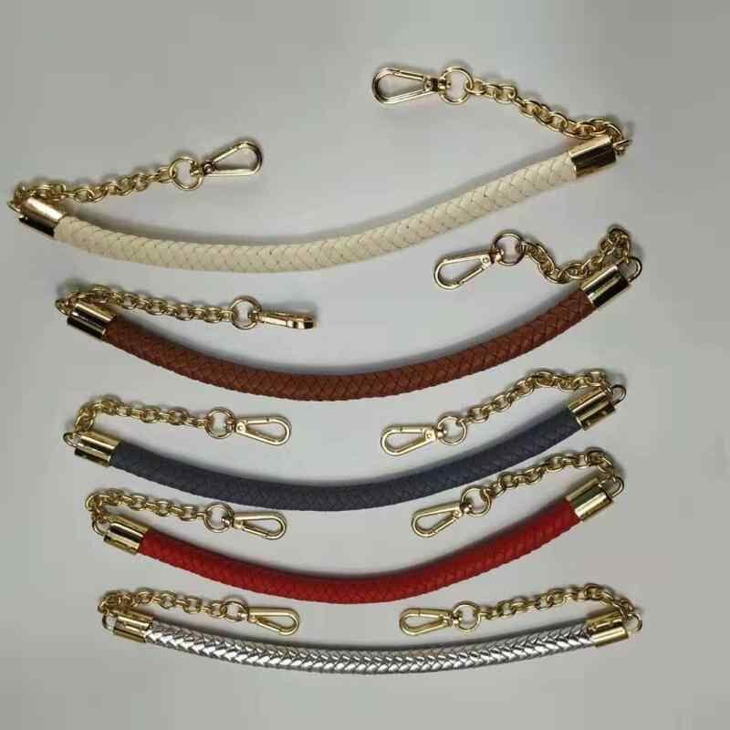 バッグストラップ PUレザー 合成皮革 編み込み 金具 チェーン 黒 ブラック 持ち手 ハンドル ショルダーストラップ 交換用 修理用 バッグアクセサリー パーツ