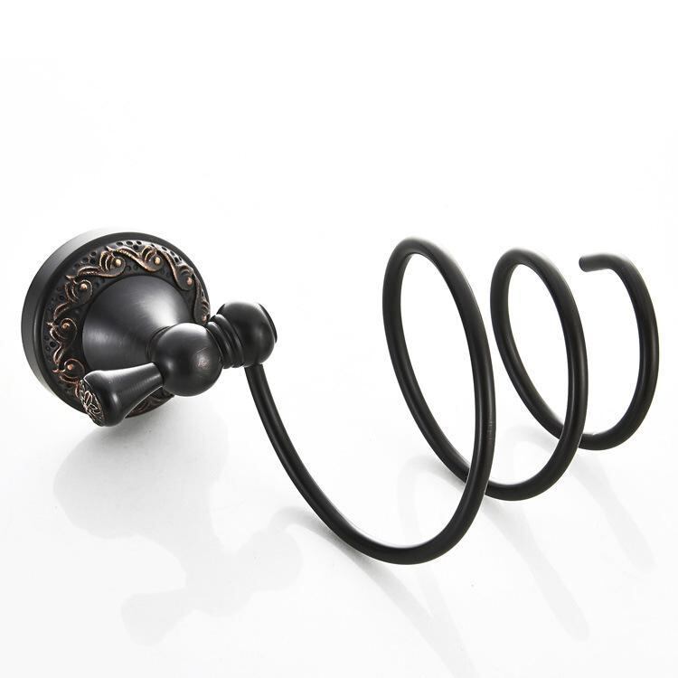 バスルームラック 欧風 アンティーク調 壁掛け ドライヤースタンド ウォールシェルフ ブラックアンティーク 銅製 ヘアドライヤー 収納 洗面所 小物置き