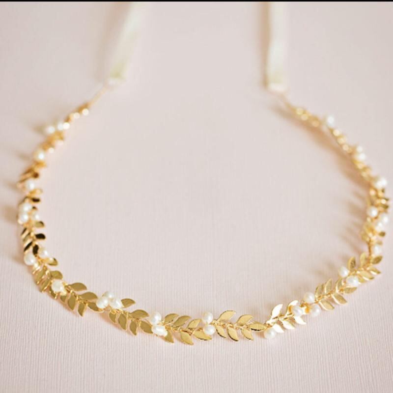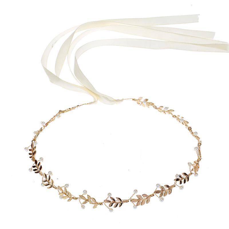 ヘアアクセサリー レディース 欧米風 ブライダル ウェディング 髪飾り 結婚式 パーティー 合金 パール リーフ ロング ヘッドドレス シンプル エレガント ゴールド まとめ髪 アップスタイル