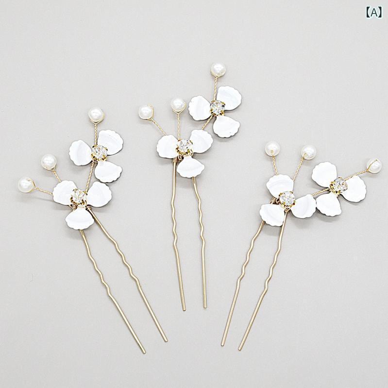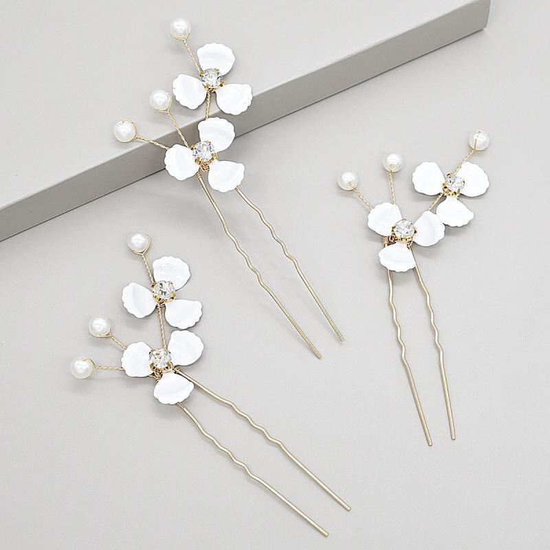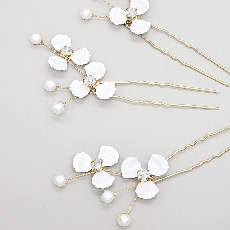 髪飾り レディース 女性用 かんざし ヘアピン 小花 フラワーモチーフ ハンドメイド 手作り ウェディング ブライダル 結婚式 披露宴 パーティー 花嫁 ゲスト ショートヘア 短髪 ホワイト 白色系
