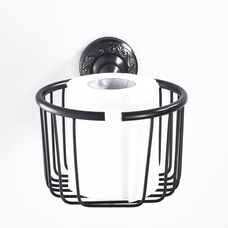 バスルーム収納 ブラックアンティーク調 銅製 丸型 アメリカンスタイル トイレットペーパーホルダー ティッシュケース ハンドソープ 小物収納バスケット