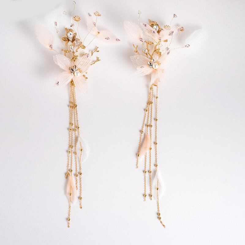 ヘアクリップ 女の子 森ガール風 プリーツチュール フリル パール ラインストーン ヌードピンク 2個セット フォーマル 発表会 結婚式 パーティー 髪飾り ヘッドドレス