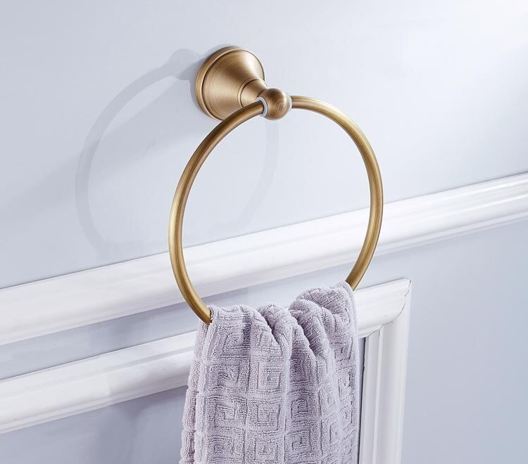 タオルリング 真鍮 円形 ヨーロピアン調 アンティーク レトロ ヘアライン ブラッシュ エイジング加工 高耐荷重 5kg タオルハンガー タオル掛け
