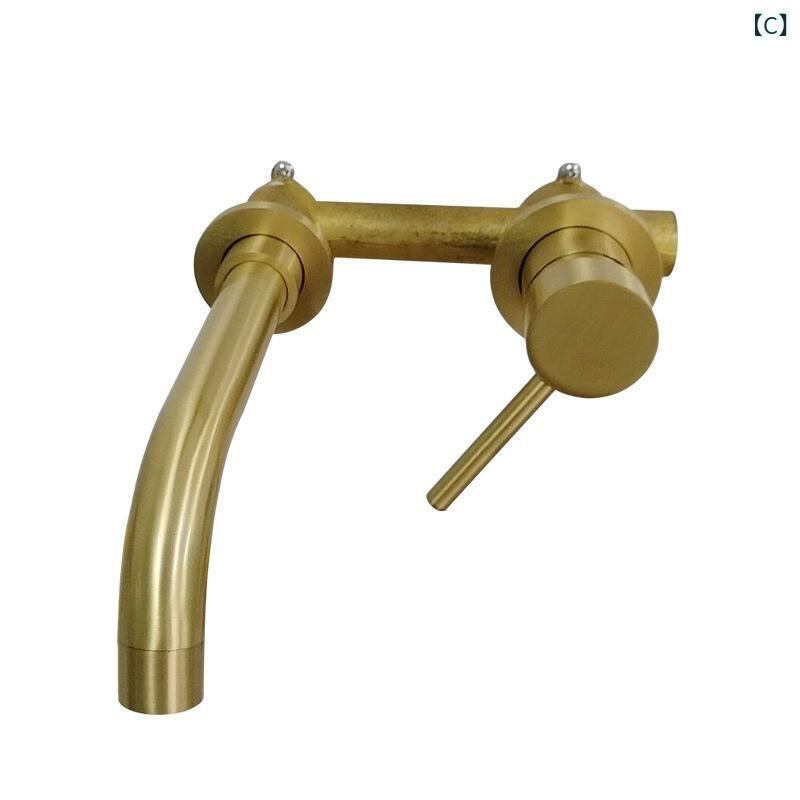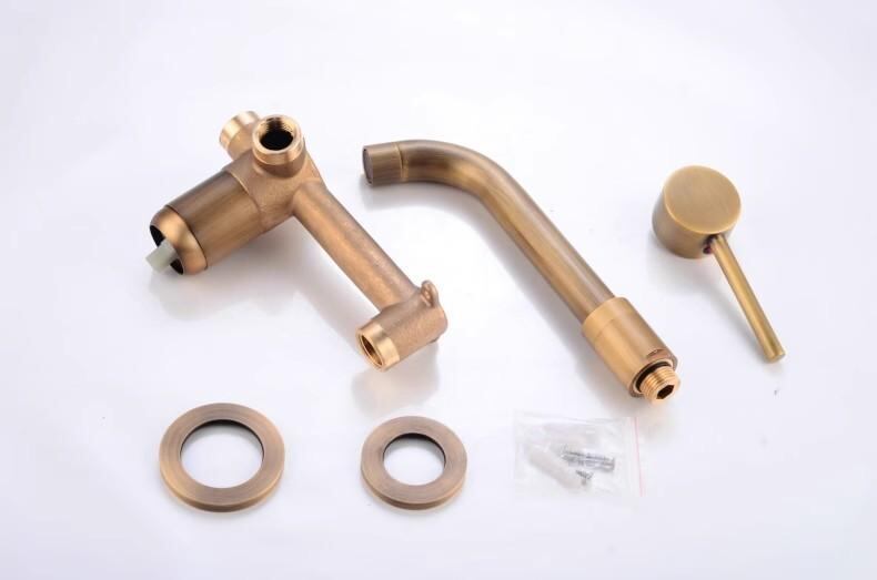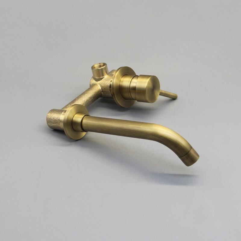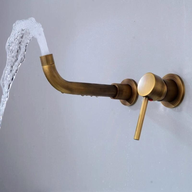 混合水栓 真鍮 アンティーク調 壁埋込型 2穴 シングルレバー 一体型 冷温水対応 レトロ 洗面ボウル 手洗い用 蛇口 陶器バルブ