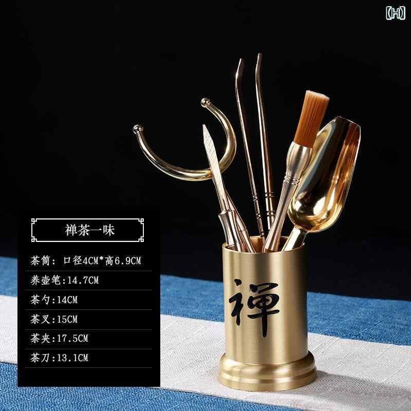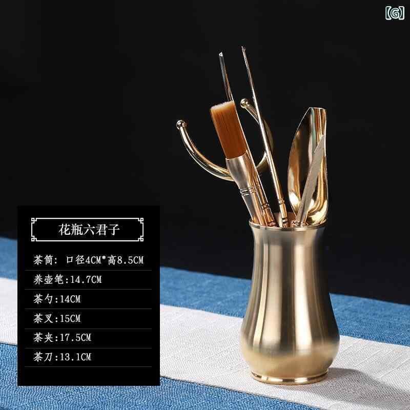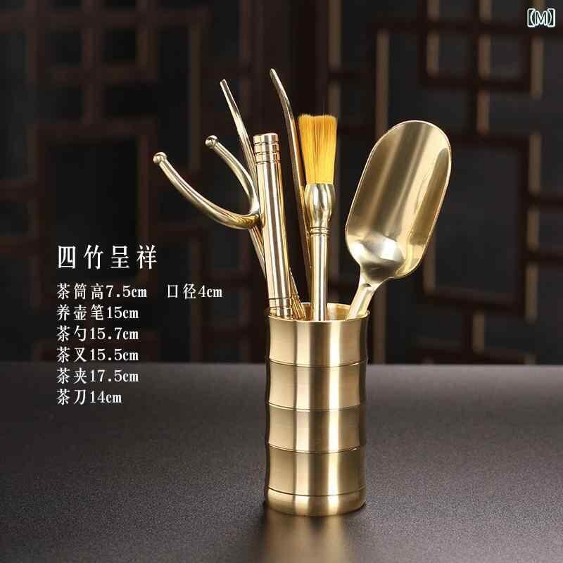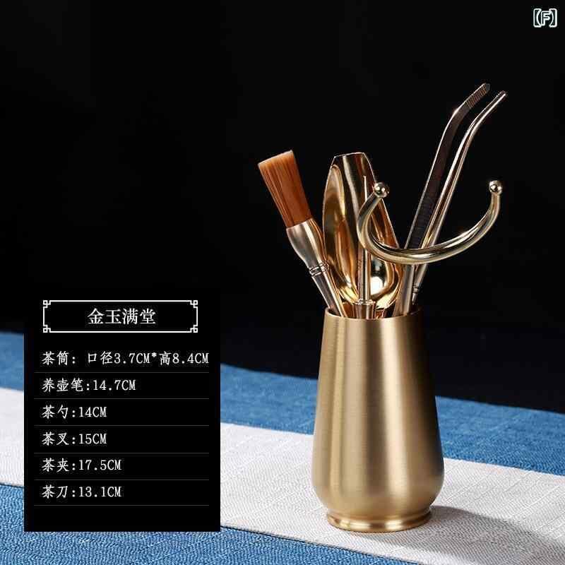 茶道具 茶道六君子セット 本格功夫茶 中国茶器 お点前道具 真鍮製 6点セット 自宅 来客用 お茶会 茶席 和室 新古典スタイル 高級感 エレガント ゴールド 黄銅 ブラス