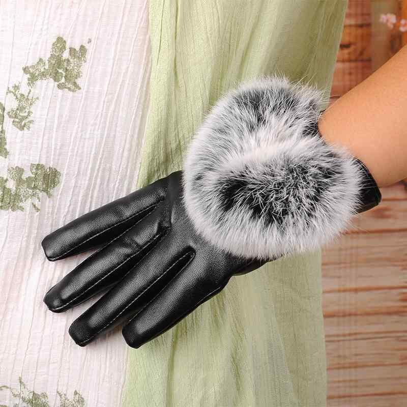 手袋 レディース 五本指 タッチパネル対応 革手袋 裏起毛 あったか 防寒 防風 防水 ラビットファー 韓国スタイル アウトドア サイクリング 通学 秋冬