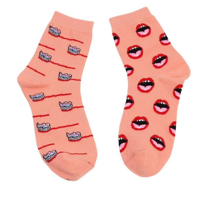 ソックス ユニセックス 男女兼用 個性的 唇 歯ブラシ イラスト コットン 綿混 クルー丈 ミドル丈 カジュアル ファッション おしゃれ 靴下 フリーサイズ カラフル 普段使い