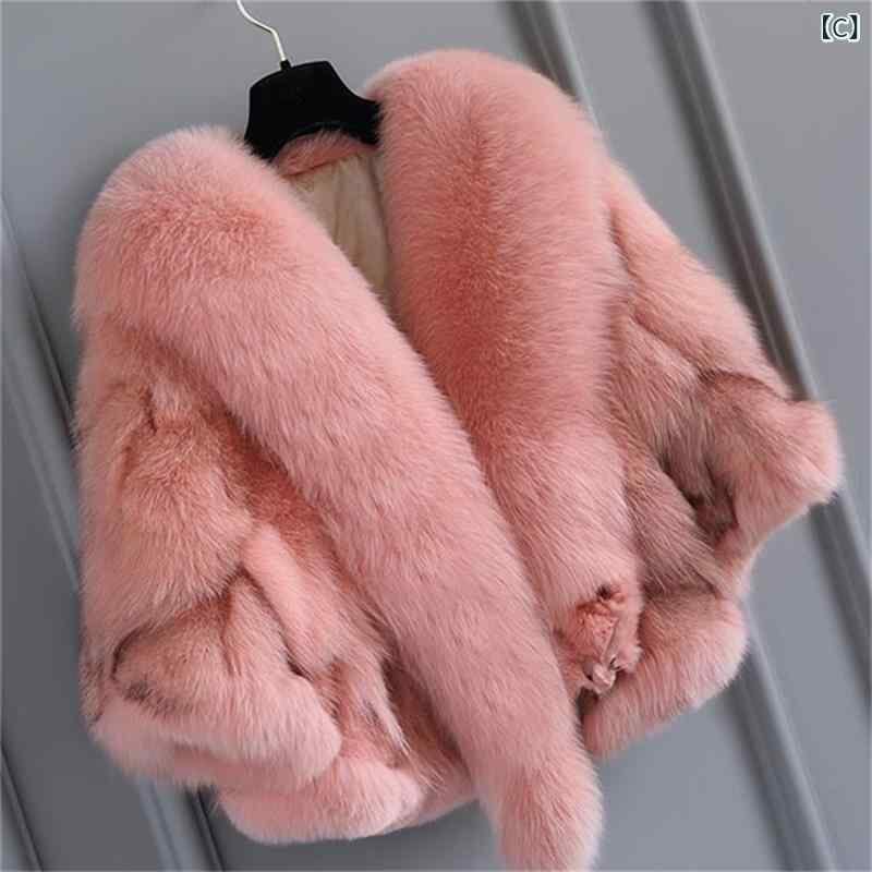 ファーコート レディース 女性用 フォックス ムートン リアルファー ショート丈 Vネック 五分袖 ショール 羽織り 秋冬 通勤 カジュアル エレガント ポケット付き