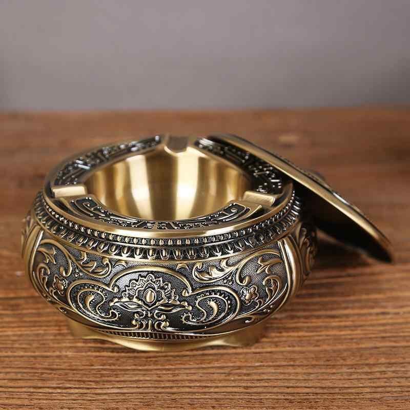 灰皿 純銅製 アッシュトレイ 蓋付き 密閉型 灰飛散防止 リビング 来客用 家庭用 おしゃれ インスタ映え スタイリッシュ ユニークデザイン レトロ調 アンティーク加工 レッド グリーン