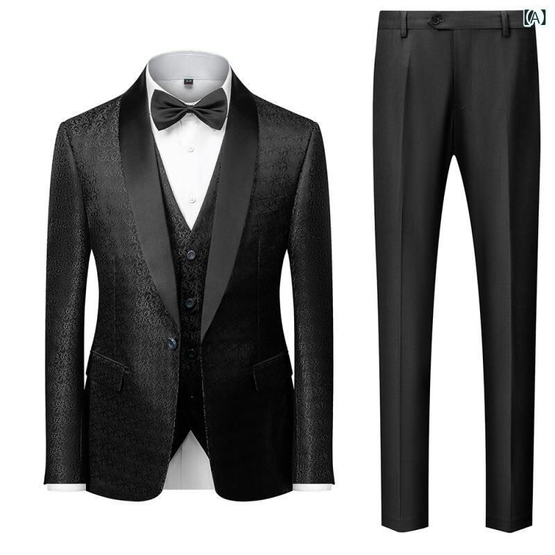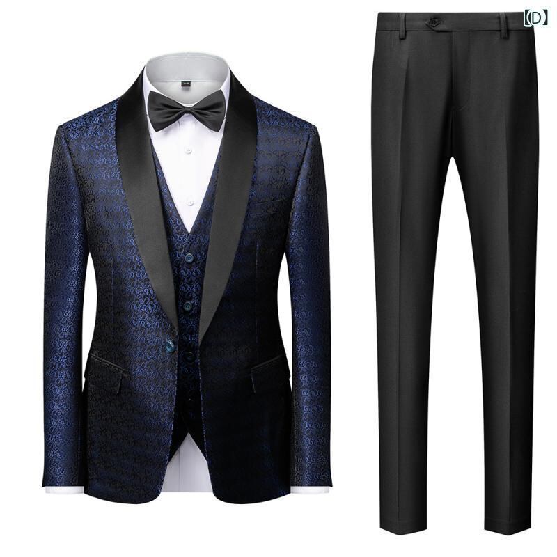 スーツ メンズ 男性用 秋冬 ビジネス カジュアル セットアップ スリーピース 結婚式 フォーマル 韓国風 スリムフィット プリント柄 コットンブレンド アセテート 通勤 オフィス パーティー ブラック ネイビー