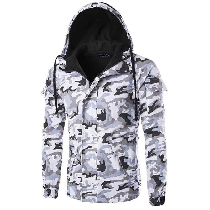 ジャケット メンズ 男性用 秋冬 中綿入り 防風 暖か フード付き 迷彩柄 切り替え ブルゾン アウター カジュアル タウンユース 綿混紡 ポリエステル グリーン系 ブラック系