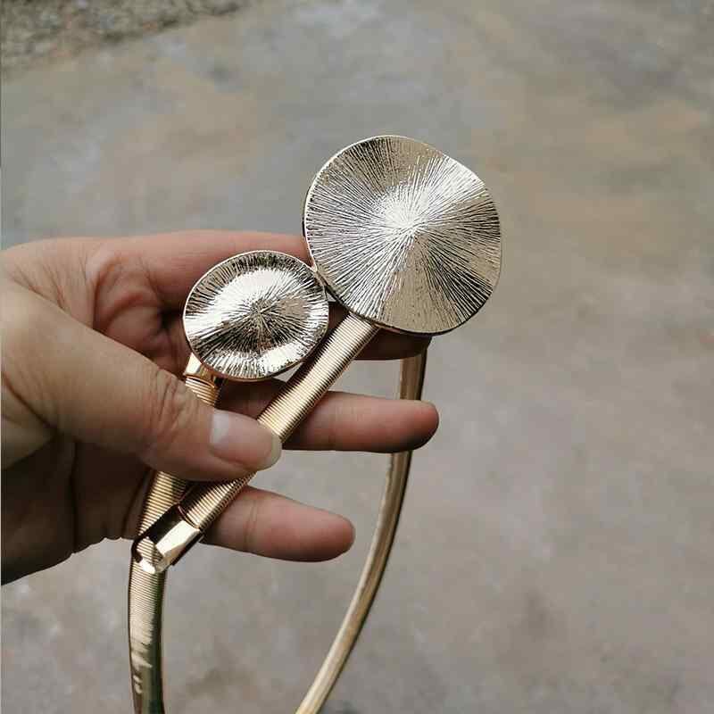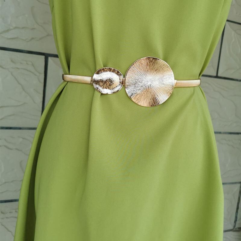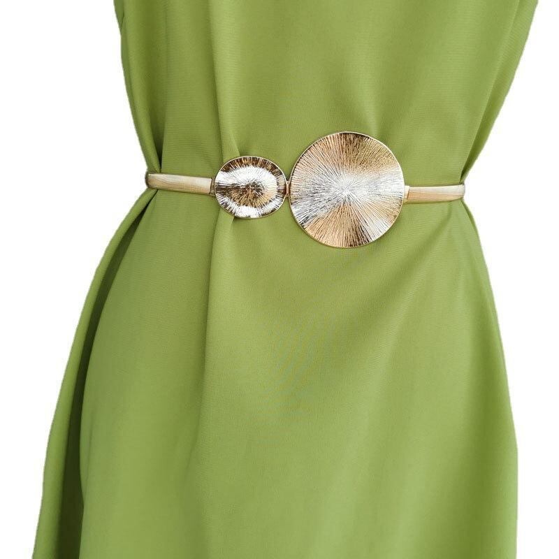 ウエストチェーン レディース メタル製 ゴールド シルバー サークルリング装飾 伸縮性 シンプル エレガント 細身 スカート ワンピース ドレス フォーマル カジュアル ウエストマークベルト