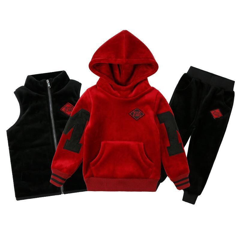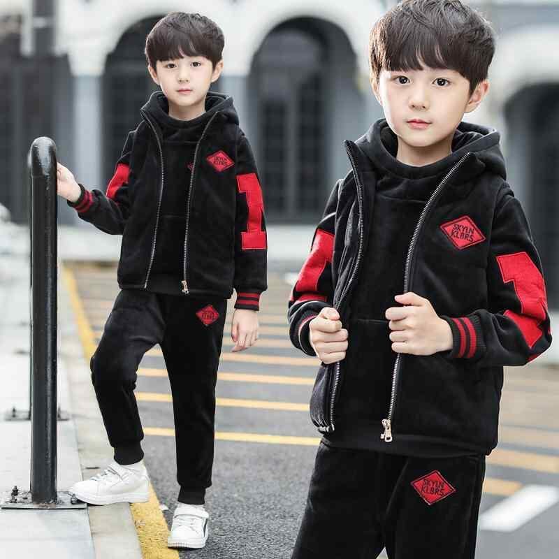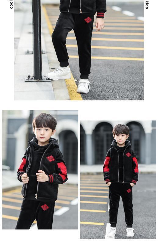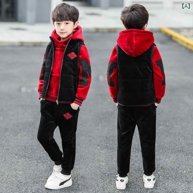 キッズ 男の子 ボーイズ 秋冬 冬服 3点セット 裏起毛 厚手 パーカー 長袖 プルオーバー ロングパンツ 韓国ファッション スポーツ 通学 普段使い 防寒 保温 ロゴプリント