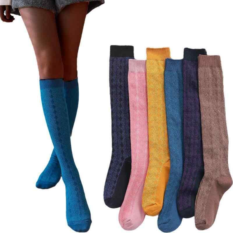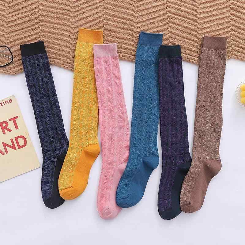 靴下 レディース ソックス 女性用 定番 アーガイル柄 ひし形格子 ロング丈 ハイソックス 春秋 カジュアル 普段使い 綿混 コットン 上品 おしゃれ
