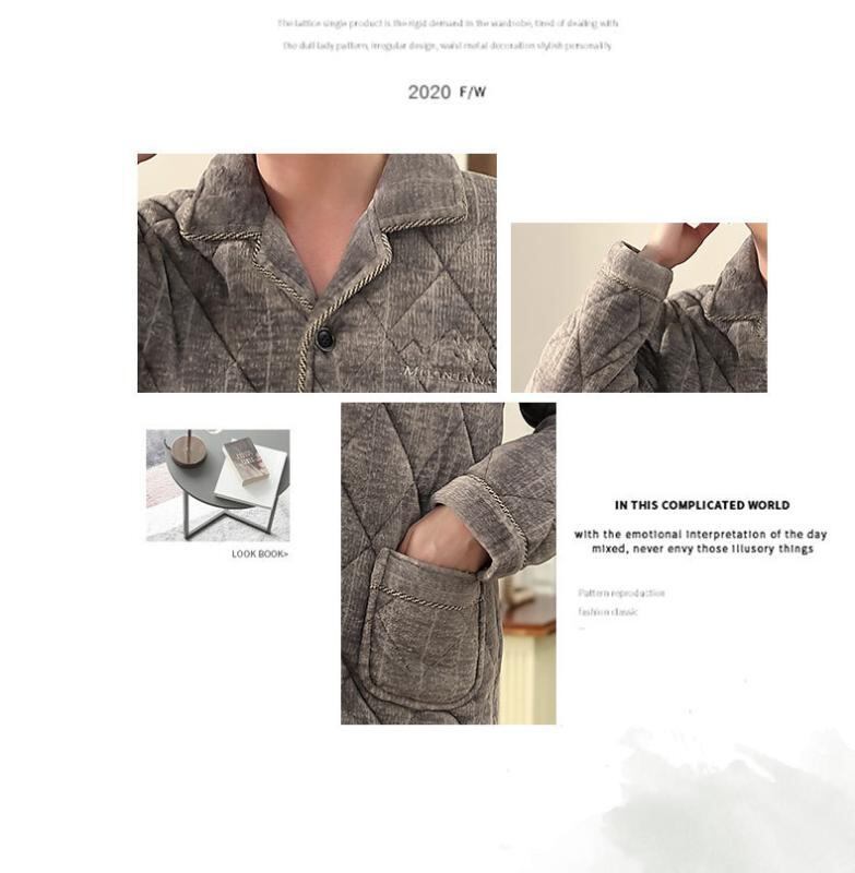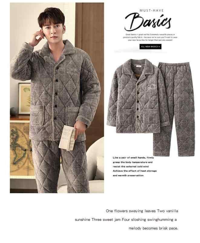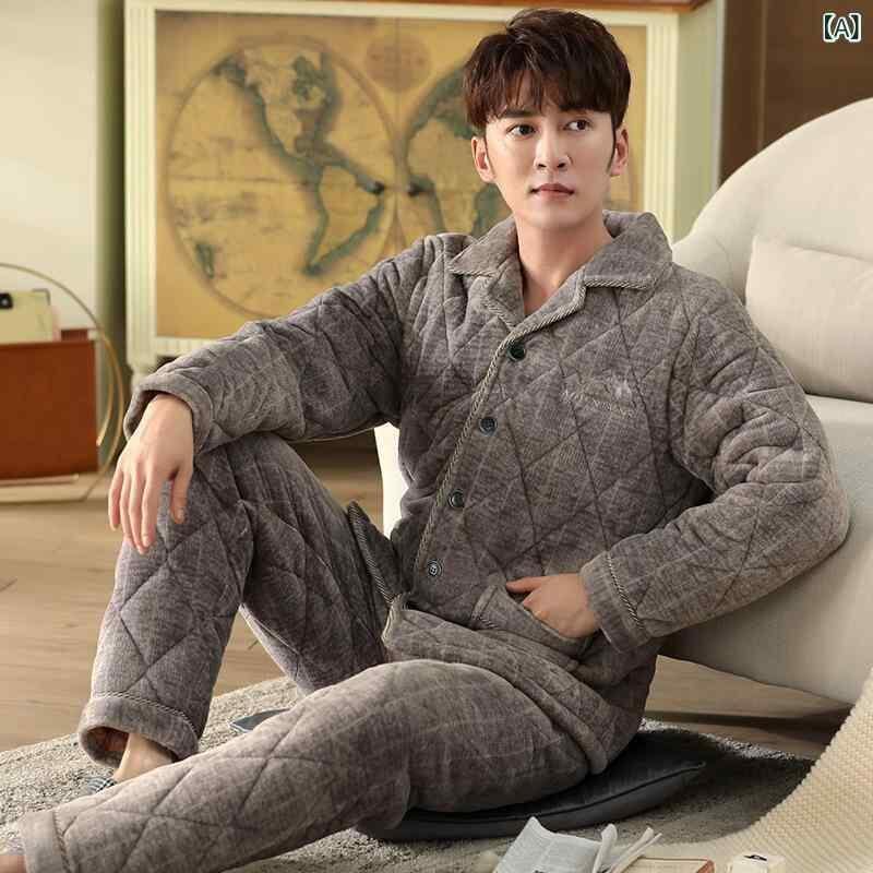 パジャマ メンズ 男性用 冬用 三層構造 極厚 裏起毛 保温 あったか 防寒 サンゴフリース 中綿 キルティング 長袖 長ズボン 上下セット 大きいサイズ ゆったり ルームウェア 部屋着 快適