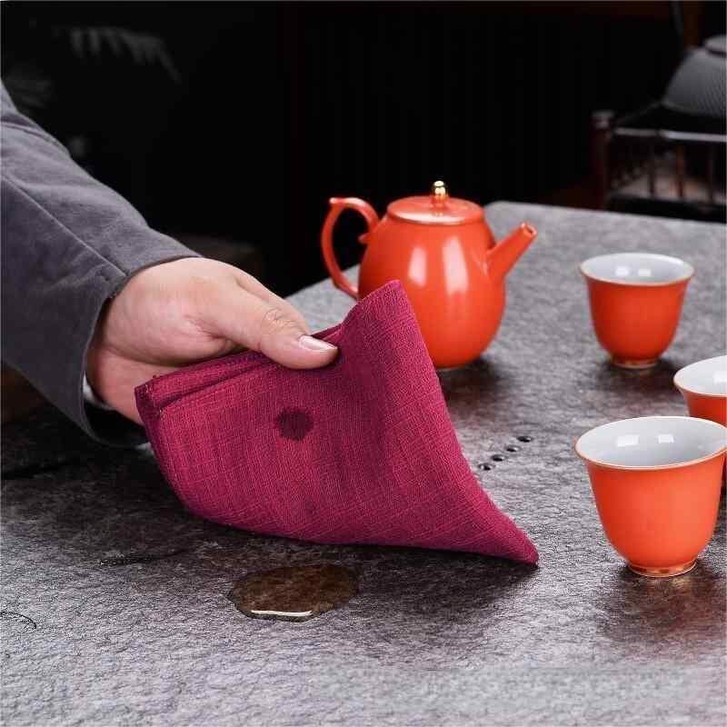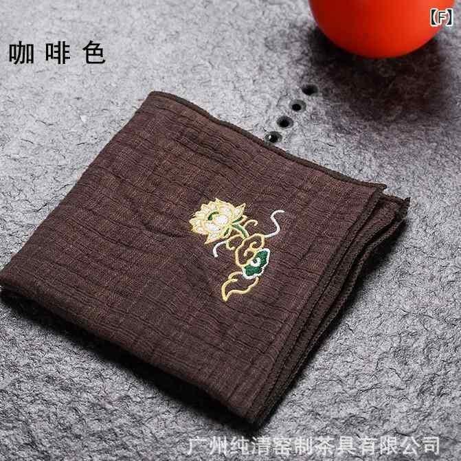 茶巾 綿麻 リネン 二層 厚手 吸水 速乾 蓮刺繍 中国風 茶芸 茶道 茶盤用 拭き布 クロス 布製 モダン シンプル 上品
