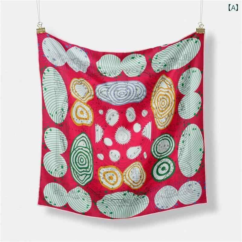 スカーフ レディース デジタルプリント 幾何学模様 日系 原宿系 森ガール レトロ アート柄 小判 薄手 フェイクシルク ファッション小物 高級感 普段使い