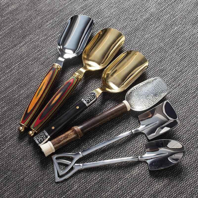 ・種類: ステンレス平型茶杓、ステンレス尖型茶杓、黒檀茶杓、花木茶杓、紫竹茶杓、花木茶杓銀白