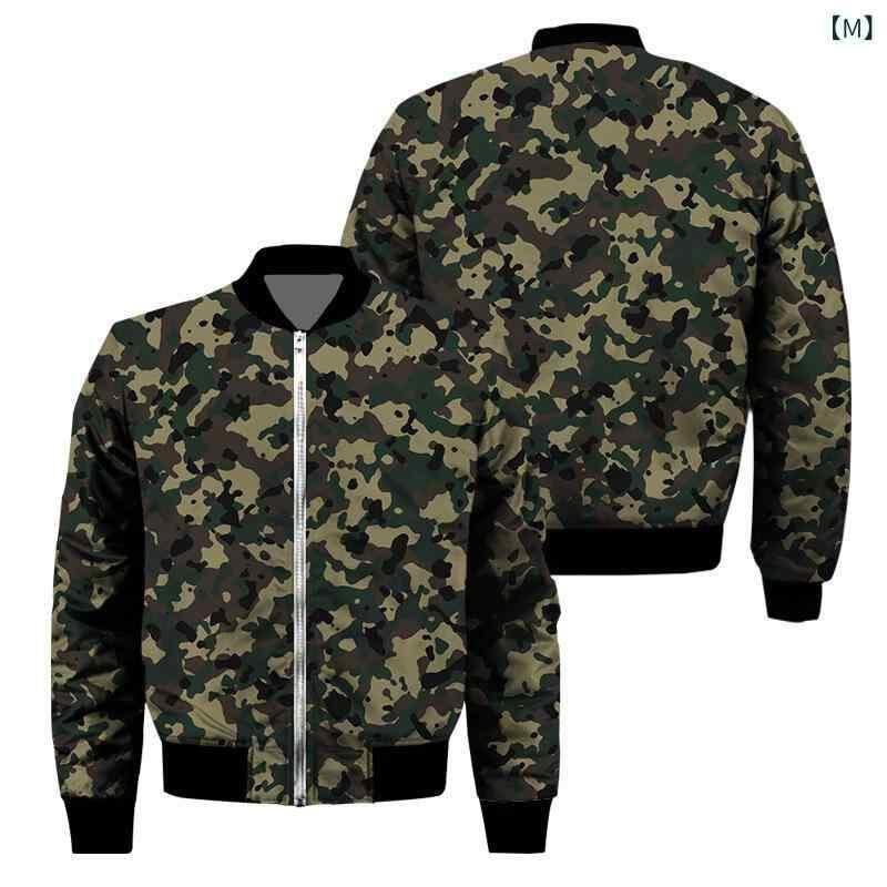 ジャケット メンズ 男性用 冬 秋冬 迷彩柄 カモフラージュ 3Dデジタルプリント ジップアップ スタンドカラー ブルゾン ジャンパー ルーズフィット ビッグシルエット ストリート スポーツ カジュアル アウター 厚手 防寒 ポリエステルブレ